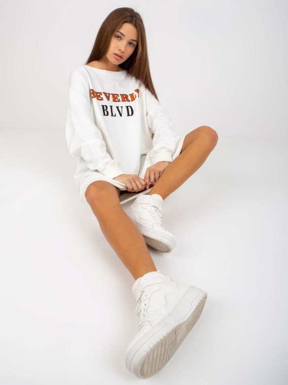 Jasnobrązowa długa bluza z nadrukiem i aplikacją .