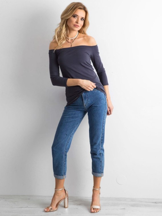 Grafitowa bluzka Live. Gładka bluzka damska w jednym kolorze to niezwykle cenny nabytek w szafie każdej kobiety. Pozwala tworzyć nieskończenie wiele stylizacji idealnych na co dzień i nie tylko. Pójdziesz w niej na randkę, na imprezę plenerową czy na spotkanie ze znajomymi. Ta bluzka basic charakteryzuje się ciekawym fasonem z hiszpańskim dekoltem w roli głównej. Odkryte ramiona oraz dopasowany do ciała krój zapewniają idealne wyeksponowanie zalet kobiecej sylwetki i zmysłowy wygląd. Bluzka basic została wykonana z naturalnej bawełny zmieszanej z materiałem syntetycznym, co zapewnia niezwykłą miękkość, delikatność i wygodę noszenia. Bluzka nie zsuwa się z ramion i nie prześwituje. Stanowi idealne uzupełnienie codziennych stylizacji, dzięki którym będziesz wyglądać modnie i kobieco.