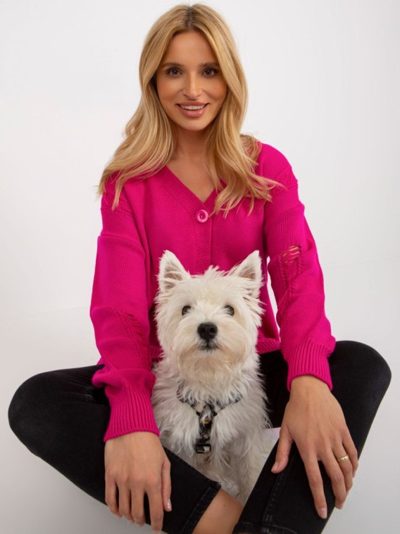 Fuksjowy luźny sweter rozpinany z dziurami RUE PARIS .