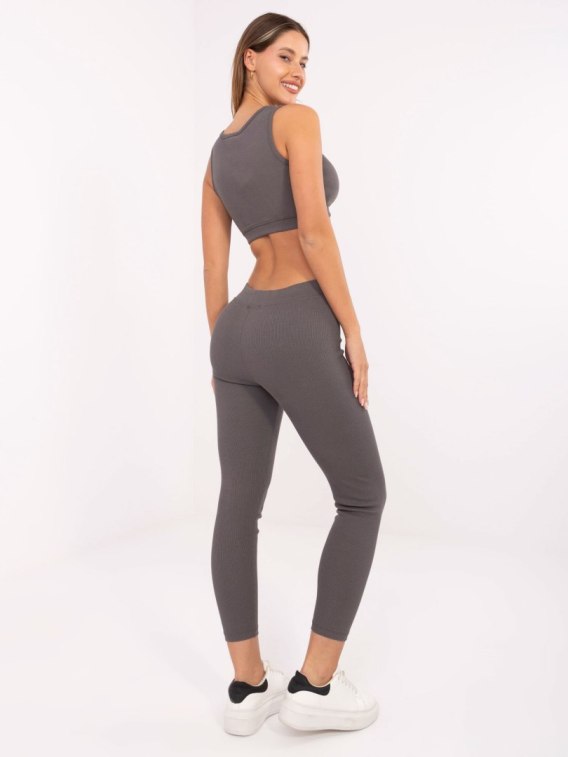 Wymiary kompletu w rozmiarze S: top: szerokość pod pachami - 30 cm, szerokość na dole - 29 cm, długość całkowita - 36 cm, legginsy: szerokość w pasie - 29 cm (na płasko), szerokość w pasie - 46 cm (po rozciągnięciu), długość całkowita - 92 cm, wysokość stanu - 27 cm.