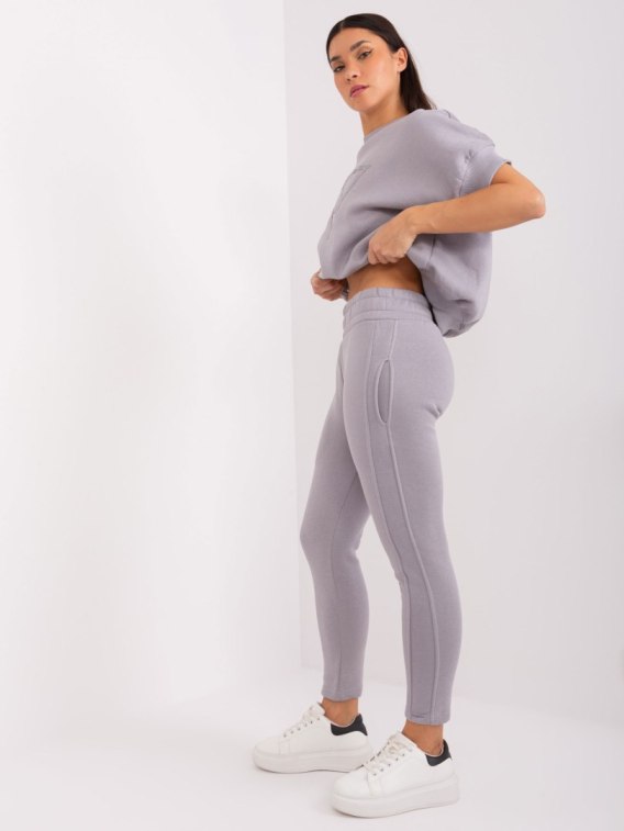 Wymiary kompletu w rozmiarze one size mierzone na płasko: szerokość bluzy pod pachami - 72 cm, długość bluzy - 56 cm, szerokość spodni w pasie - 38 cm, wysokość stanu - 34 cm, długość spodni - 97 cm.