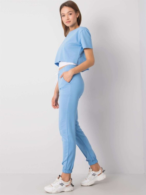 Wymiary kompletu w rozmiarze S mierzone na płasko: bluza - szerokość pod pachami - 51 cm, długość całkowita - 42 cm, spodnie - szerokość w pasie - 38 cm, długość całkowita - 99 cm, top - szerokość pod pachami - 40 cm, długość całkowita - 46 cm