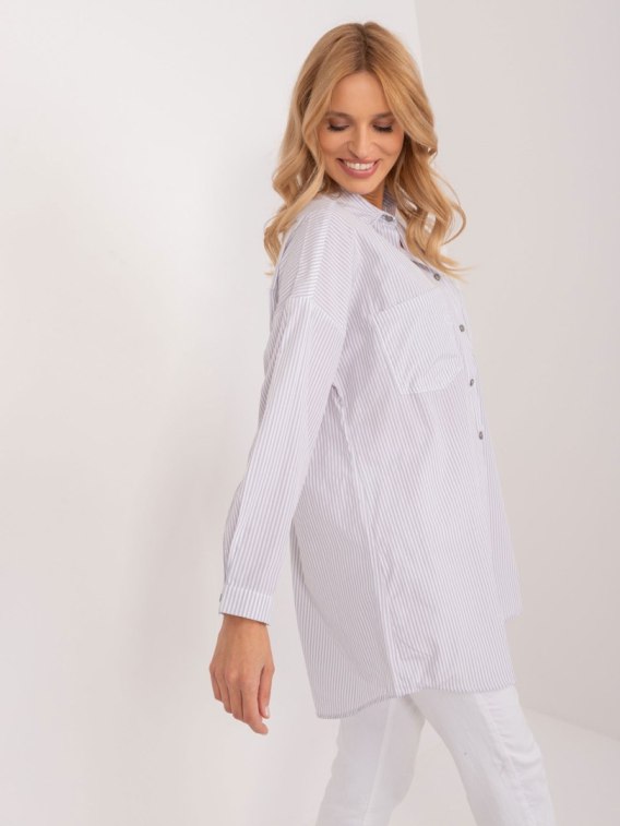 Wymiary koszuli w rozmiarze S mierzone na płasko: szerokość pod pachami - 62 cm, długość całkowita - 106 cm, długość rękawa - 57 cm.