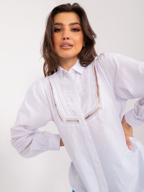 Wymiary koszuli w rozmiarze S mierzone na płasko: szerokość pod pachami - 53 cm, długość rękawa - 60 cm, długość całkowita - 60 cm.