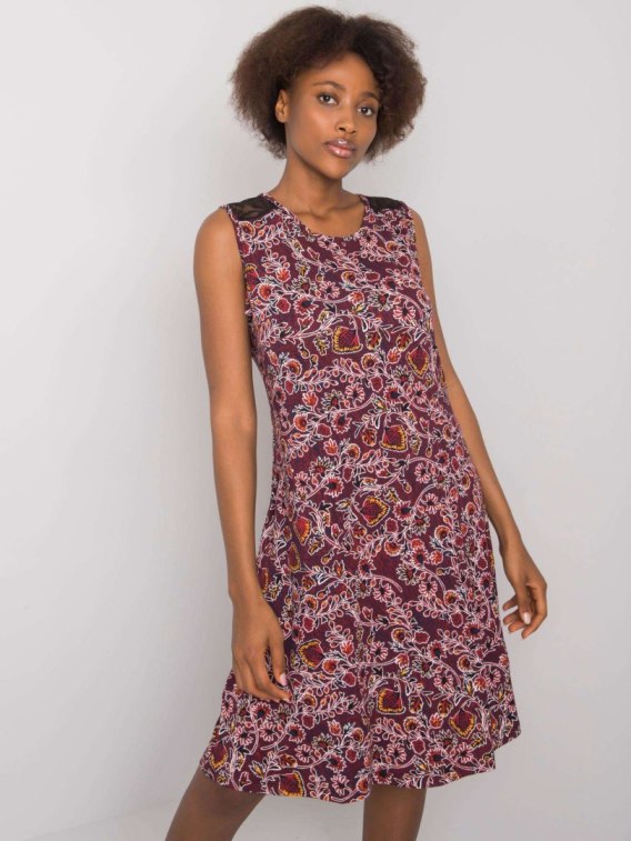 Bordowa wzorzysta sukienka damska.