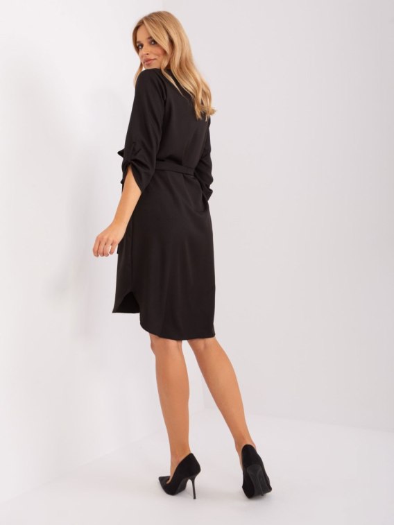 Czarna gładka sukienka na co dzień z dekoltem V.
